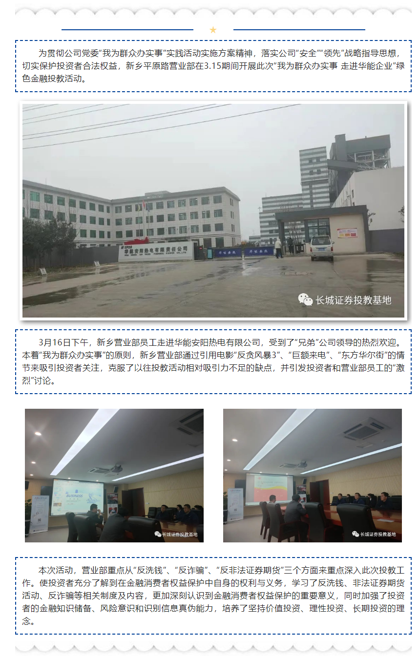 21【城.活动 3·15专题报道】长城证券新乡营业部“我为群众办实事走进华能企业”投资者教育活动