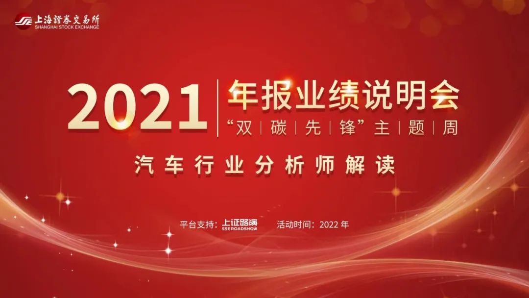 业绩说明会是上市公司的展示窗口,通过公司与投资者,特别是中小投资者直接高效的互动交流,既有助于满足投资者个性化的信息需求,又能提升信息披露针对性和有效性,是推动上市公司高质量发展的重要途径。在2021年年度报告披露季,为更好地引导广大中小投资者掌握解读行业的科学方法,读懂上市公司报告,深度参与业绩说明会,把握行业发展趋势,研判公司投资价值,上海证券交易所推出以“与高质量发展同行”为主题的沪市公司业绩说明会“主题周”行业解读系列节目,邀请证券公司的资深行业首席分析师面向投资者系统梳理投资研究框架,共同倡导价值投资理念。4月8日,《2021年报业绩说明会“双碳先锋”主题周——汽车行业分析师解读》将正式上线,邀请的是长江证券汽车行业首席分析师高登先生,他将从汽车行业产业链、整车板块分析、零部件板块分析以及行业展望等四个方面对汽车行业展开讨论,详解投资汽车行业的关注重点。
