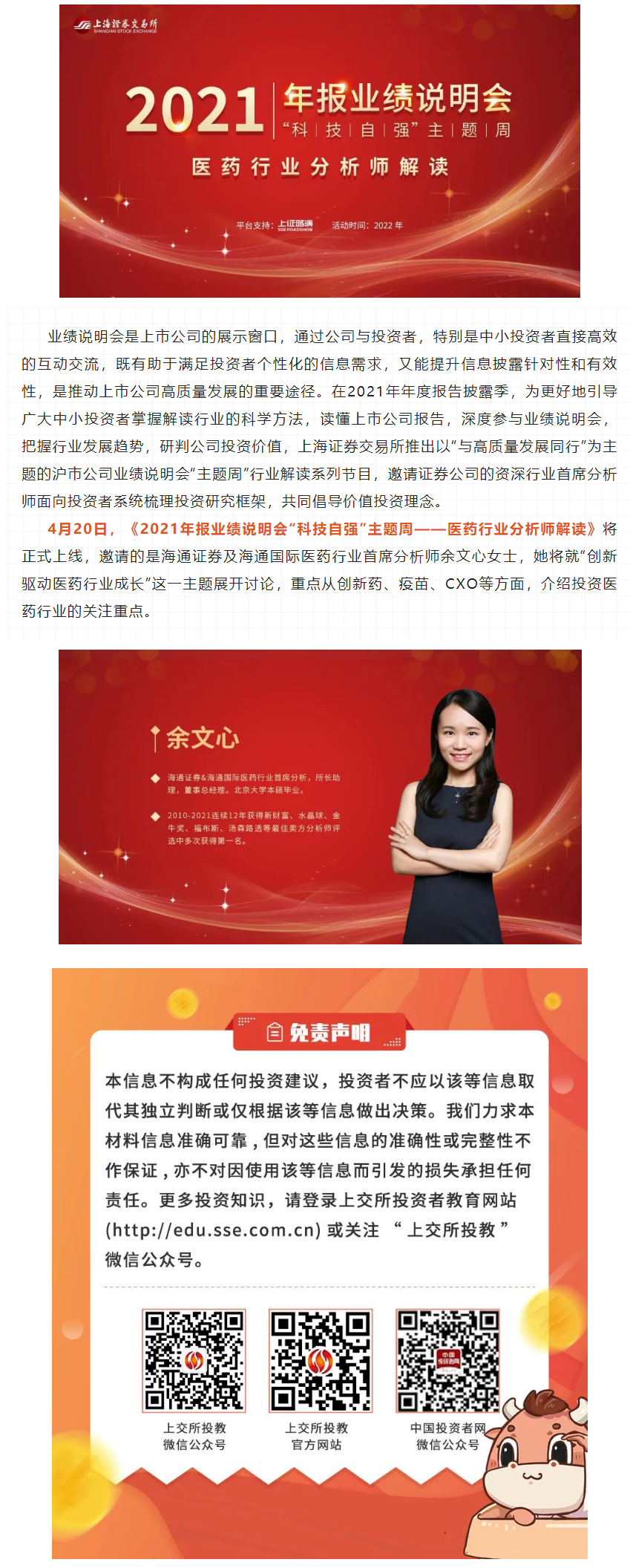 38【长·分享】与高质量发展同行 | 沪市公司业绩说明会“主题周”行业解读之医药行业分析师解读预告