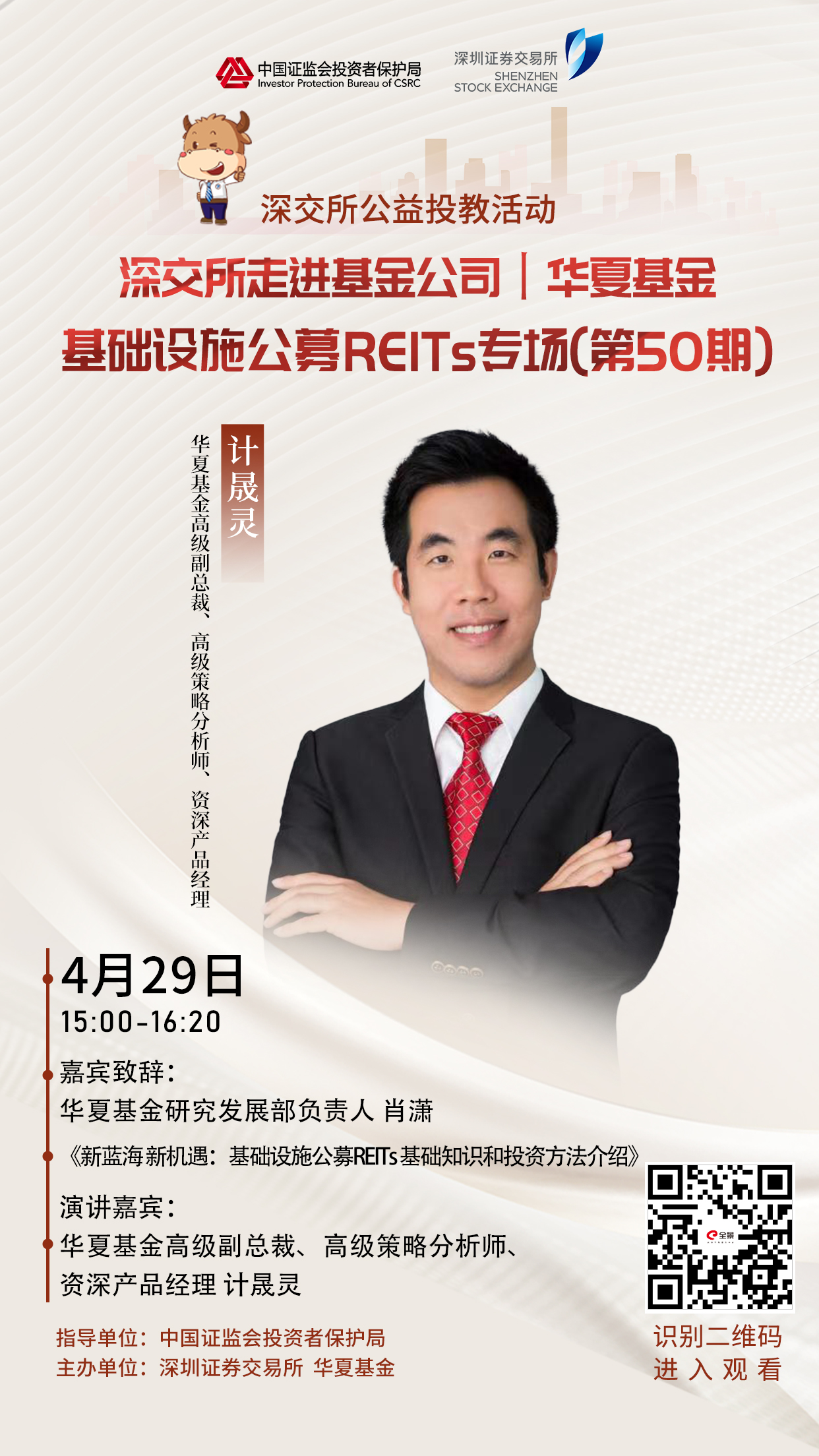 今天4月29日(周五)下午15:00-16:20,深交所投资者服务季推出第50期“走进基金公司——华夏基金(基础设施公募REITs)”活动。