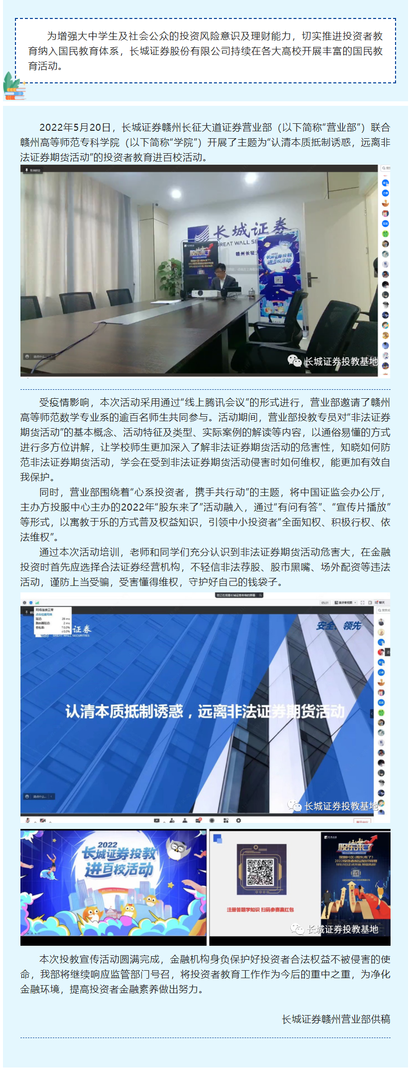 59【城·活动 515全国投资者保护宣传日】长城证券投教进百校系列——走进赣州高等师范专科学院