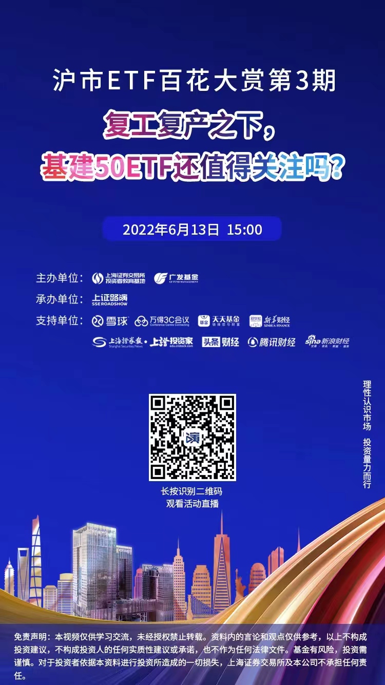 近期,上交所投教联合各大基金公司共同推出“沪市ETF百花大赏”系列活动。今天,广发基金指数投资部基金经理霍华明先生为您带来《复工复产之下,基建50ETF还值得关注吗》,今晚晚间,上交所投教公众号将发布回放视频。敬请关注!