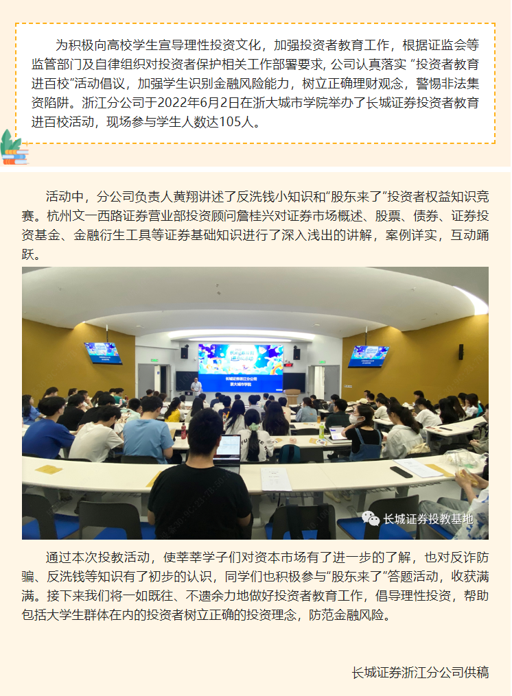 83【城·活动】长城证券投教基地“投教进百校”系列活动——走进浙大城市学院