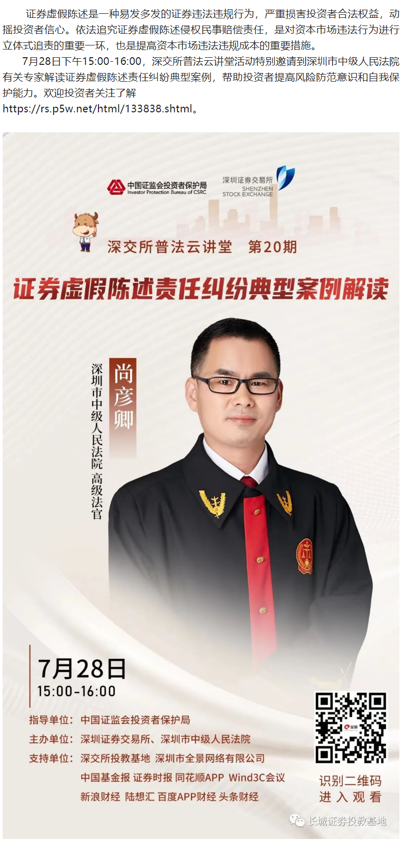 160【城·活动】深交所普法云讲堂第20期:证券虚假陈述责任纠纷典型案例解读