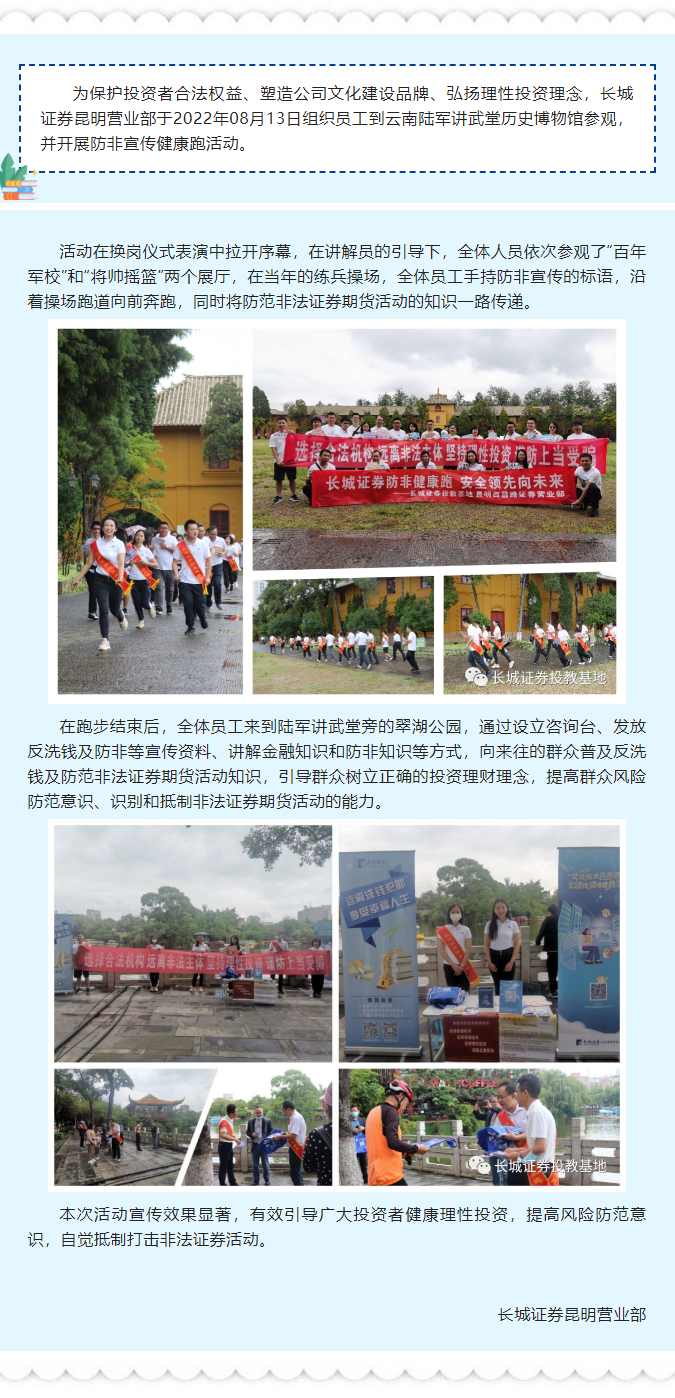184【城·活动】长城证券昆明营业部开展防非健康跑活动