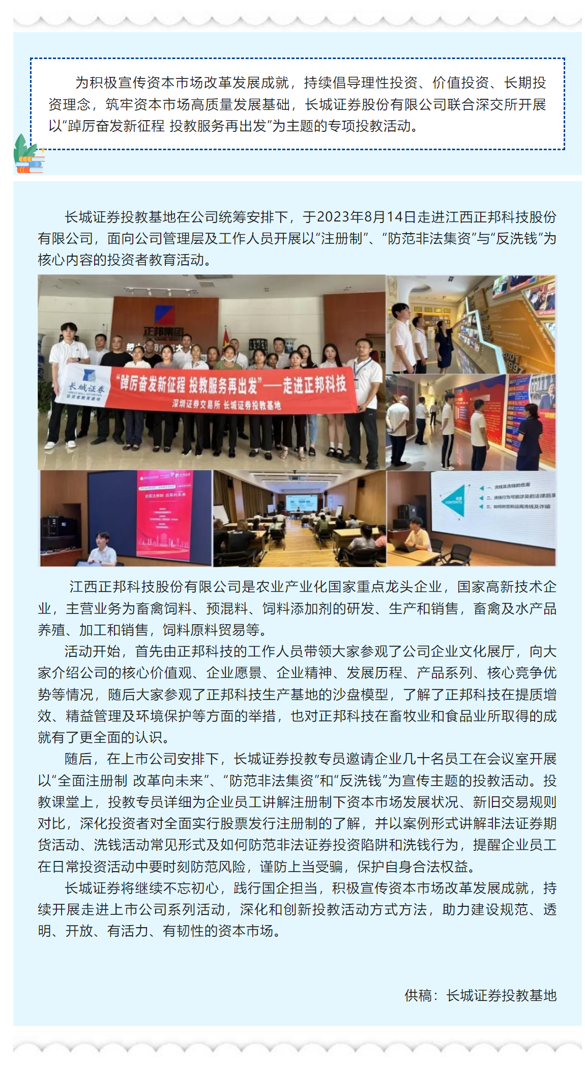 【城·活动】8·18投教节丨踔厉奋发新征程 投教服务再出发——长城证券投教基地走进江西正邦科技股份有限公司