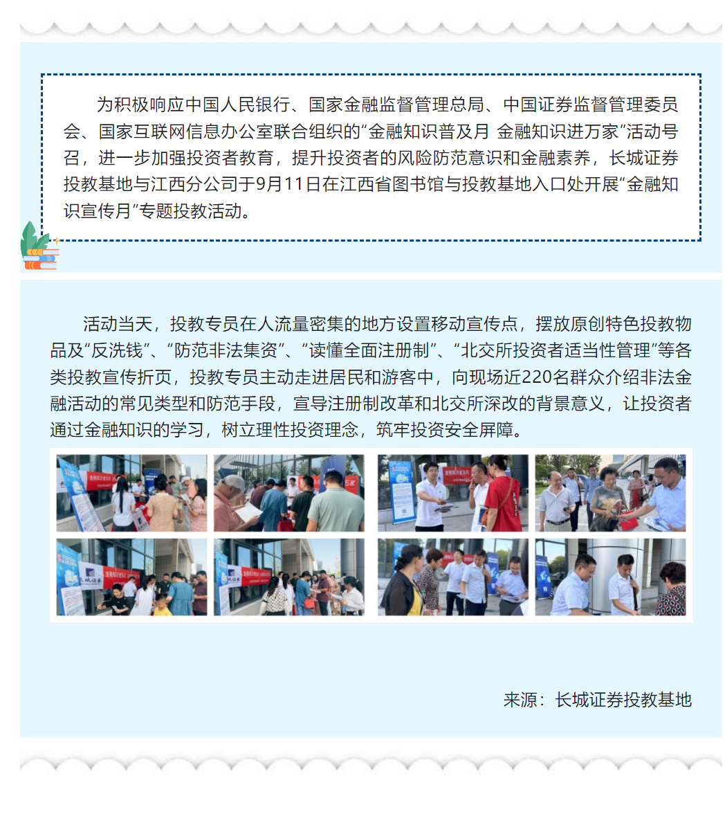 【金融知识宣传月】长城证券投教基地与江西分公司共同开展“金融知识普及月”专题宣传活动
