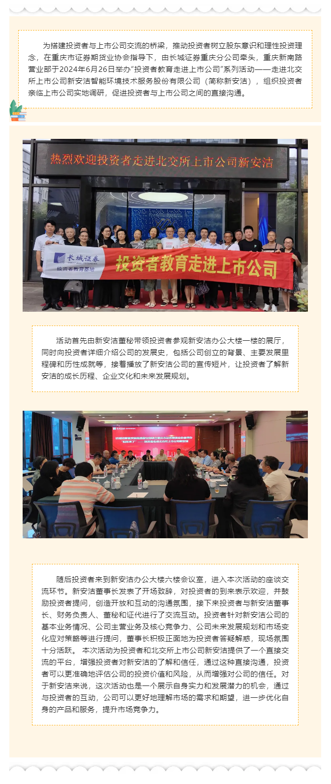 【城·活动】长城证券重庆新南路营业部联合重庆市证券期货业协会举办“投资者教育走进北交所上市公司新安洁