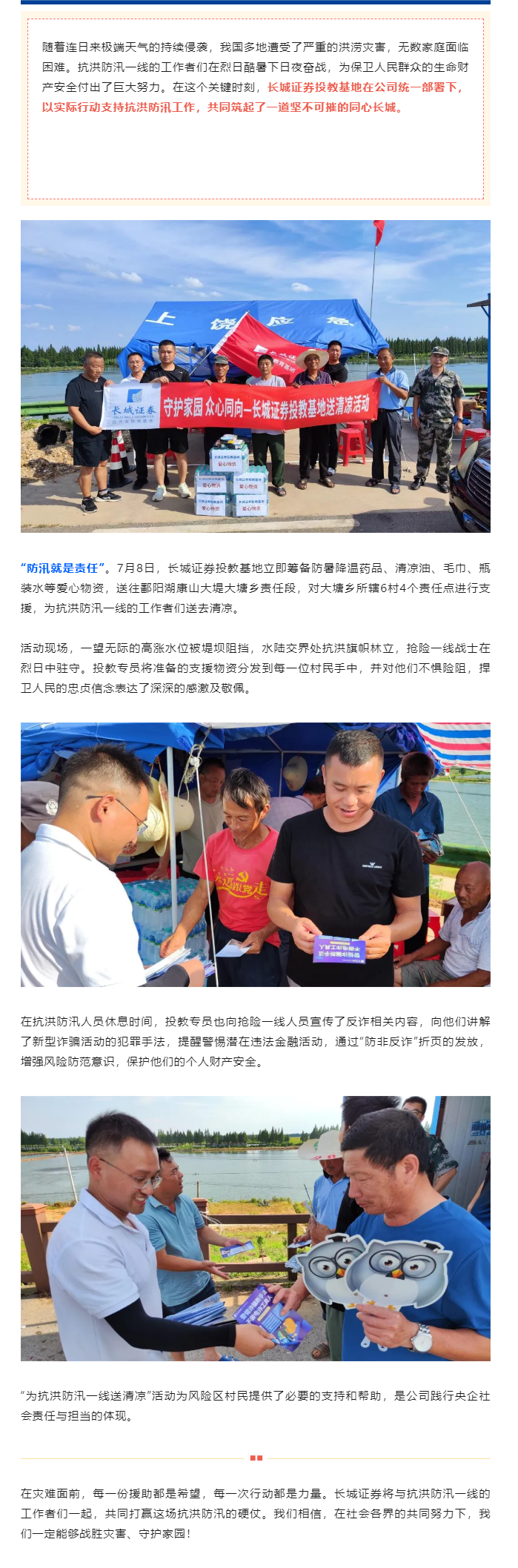 【城·活动】长城证券深入抗洪防汛一线,践行央企责任