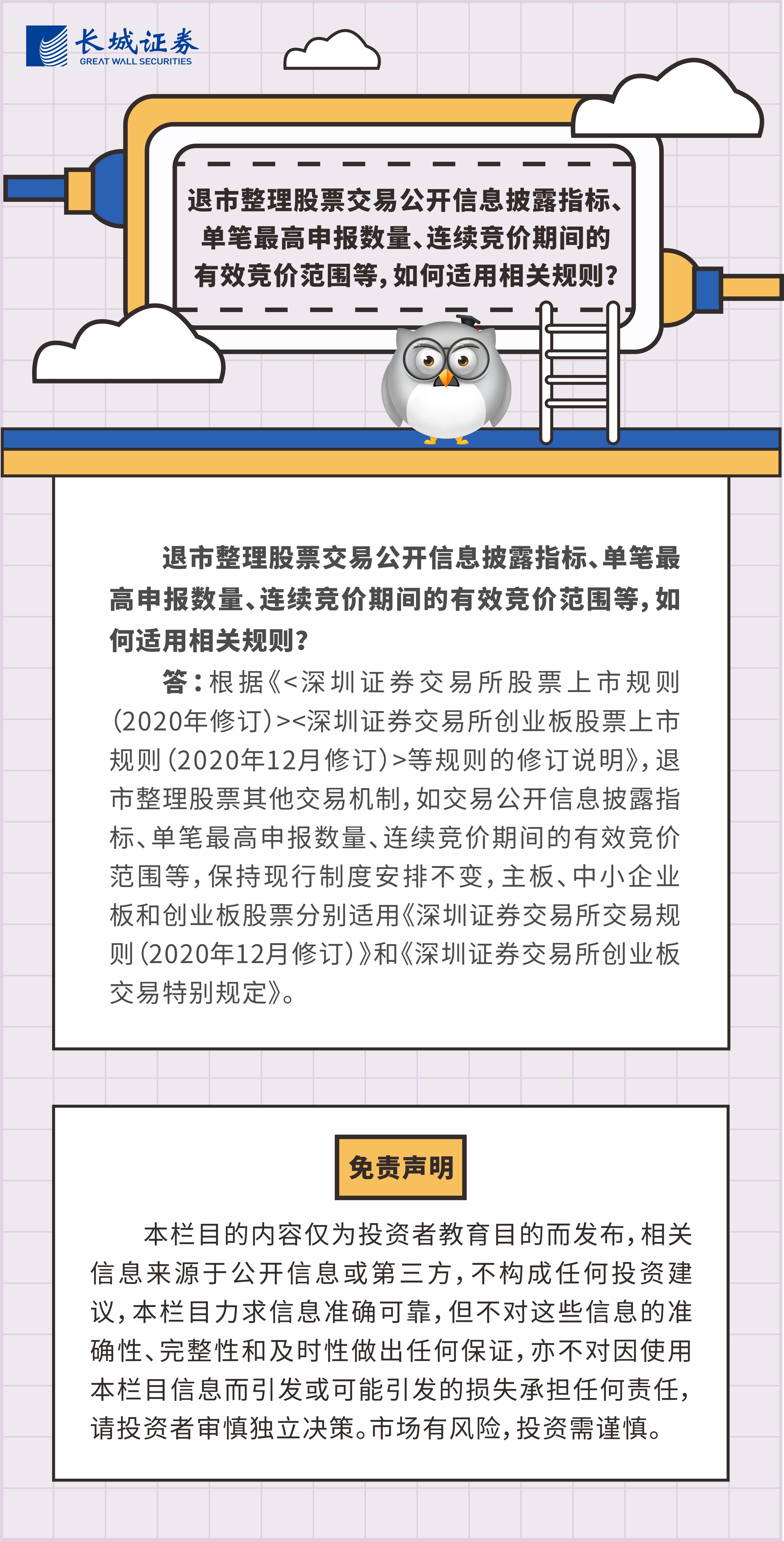 57 退市整理股票交易公开信息披露指标、单笔最高申报数量、连续竞价期间的有效竞价范围等,如何适用相关规则?