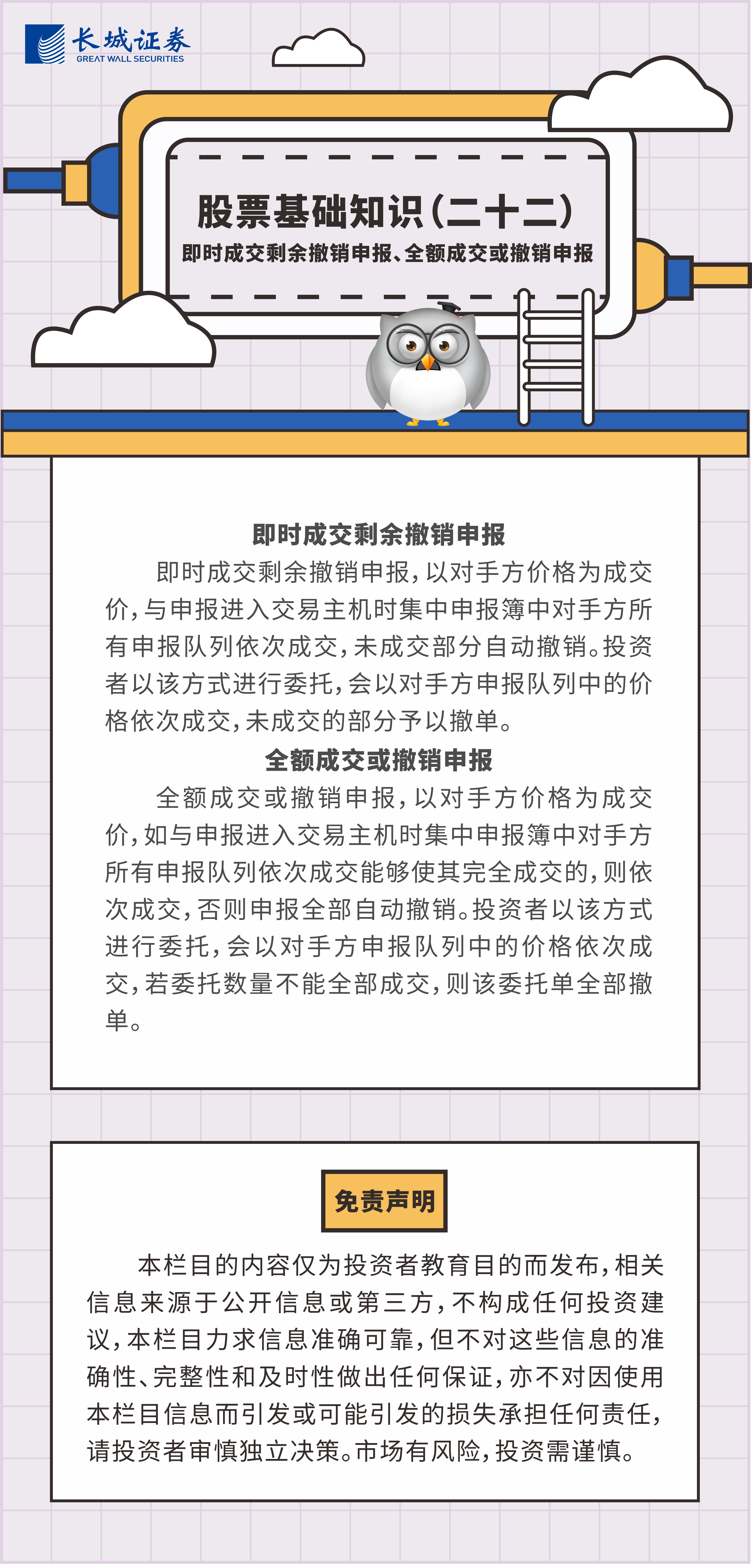83 股票基础知识(二十二)即时成交剩余撤销申报、全额成交或撤销申报
