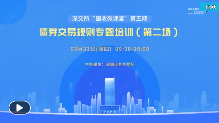 《深圳证券交易所债券交易规则》将于2022年4月25日起施行,深交所对债券交易机制及技术系统进行了全面优化提升。为使各市场参与人充分熟悉深市债券交易安排以及相关系统的使用,深交所联合相关单位举办交易规则系列专场培训。培训以线上方式开展,培训专题“成熟一批,上线一批”。第一场培训已于3月17日顺利开展,现于3月31日开展第二场培训,内容涵盖债券交易参与人进场、登记结算入场、通信系统准备等,并就市场关注的问题进行集中答疑。
