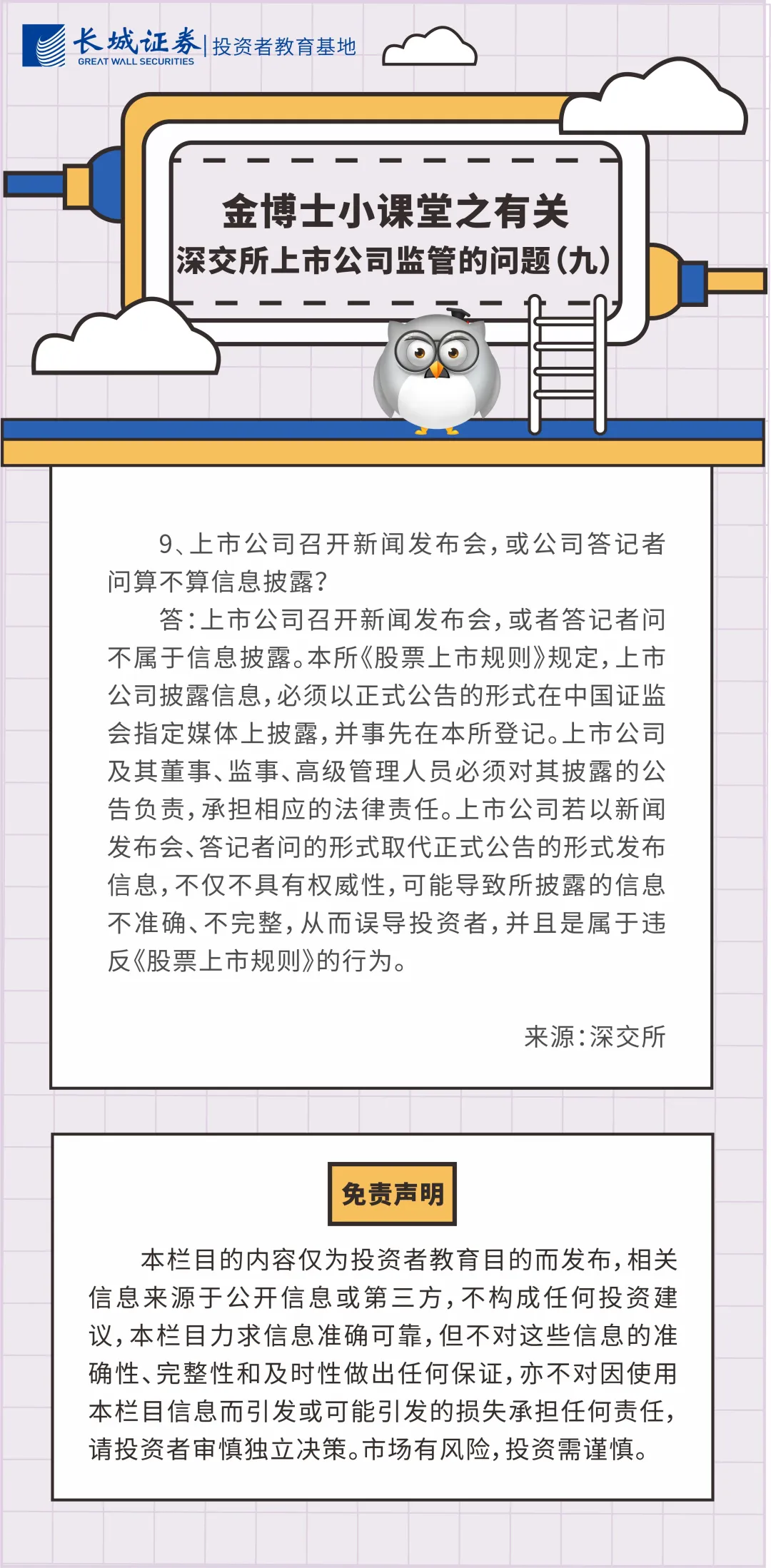 【长·原创·图文】金博士小课堂之有关深交所上市公司监管的问题(九)