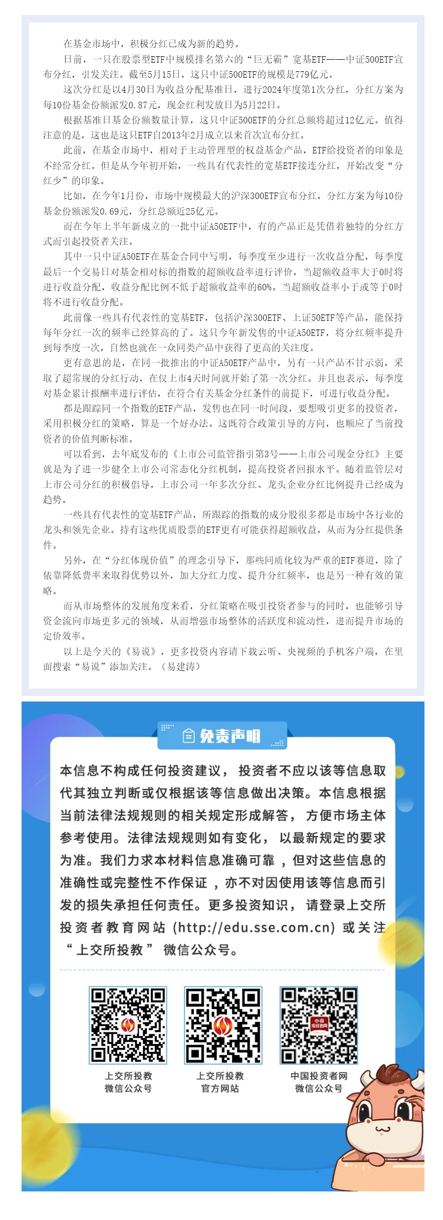 【上交所投教】5·15专栏 _ 央广经济之声《易说:宽基ETF积极分红透露怎样信号?》