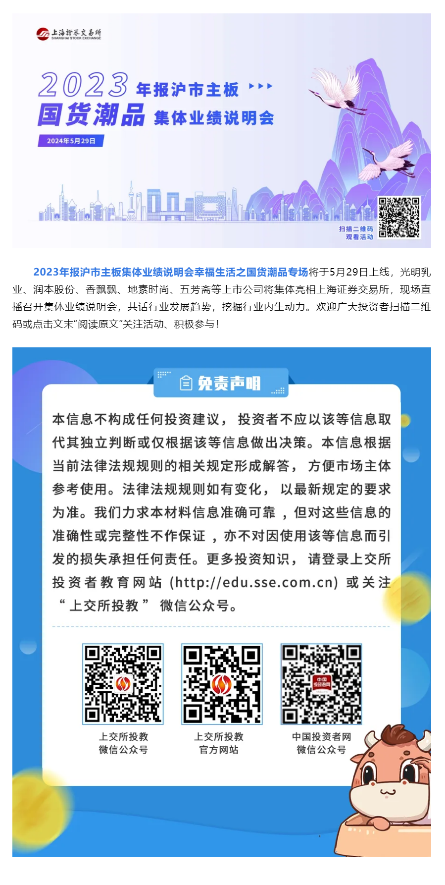 【上交所投教】活动预告 _ 2023年报沪市主板集体业绩说明会——幸福生活之国货潮品专场