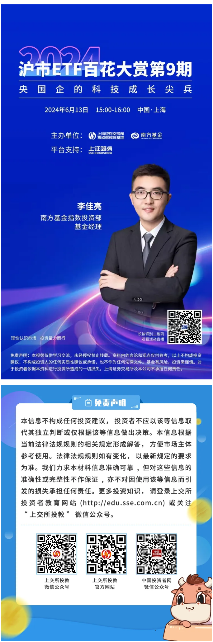 【上交所投教】活动预告 2024年沪市ETF百花大赏第九期:央国企的科技成长尖兵