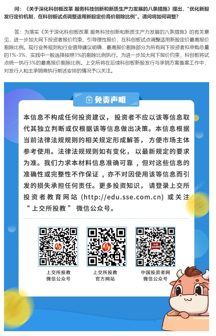 【上交所发布】上交所有关负责人就在科创板试点调整适用新股定价高价剔除比例答记者问