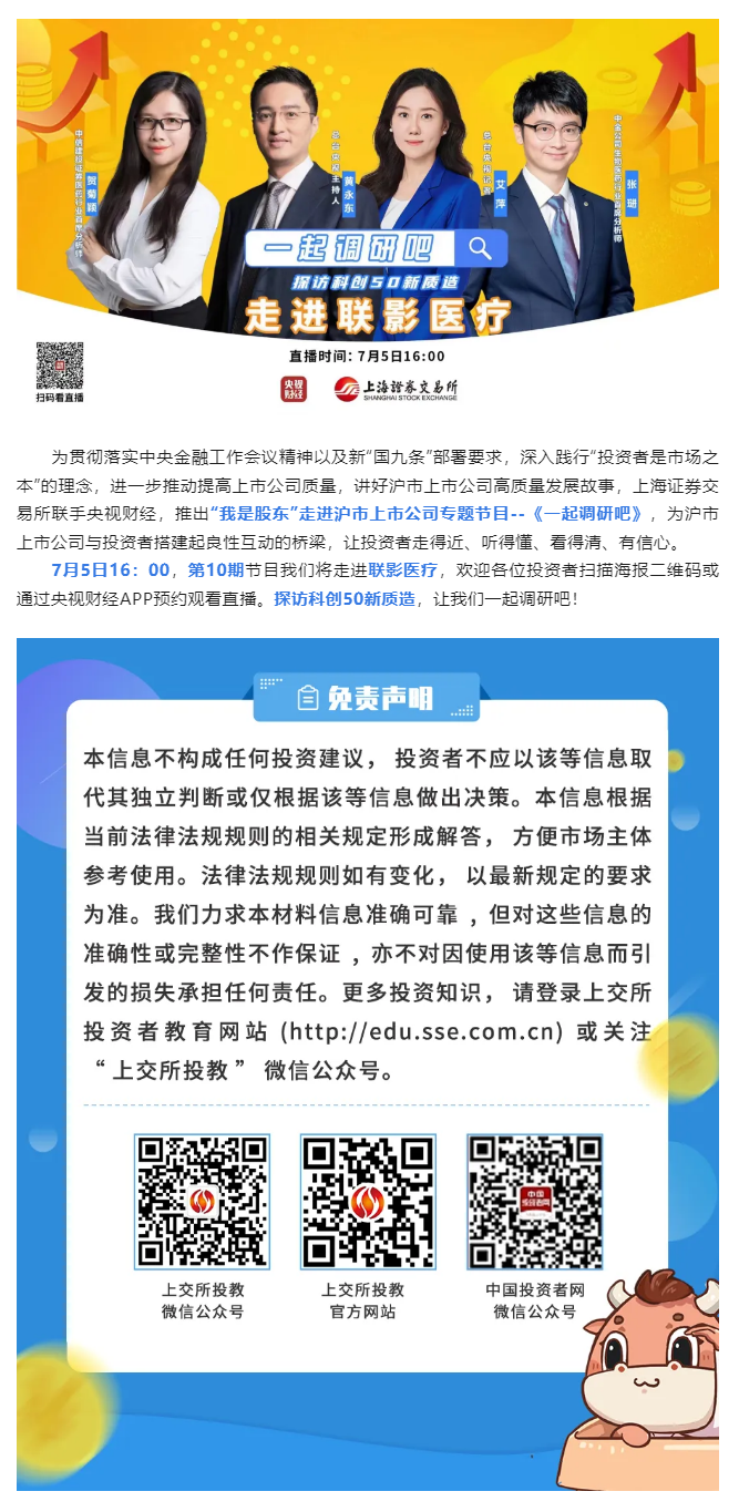 【上交所投教】活动预告 _ “我是股东”探访科创50新质造暨央视财经《一起调研吧》第10期