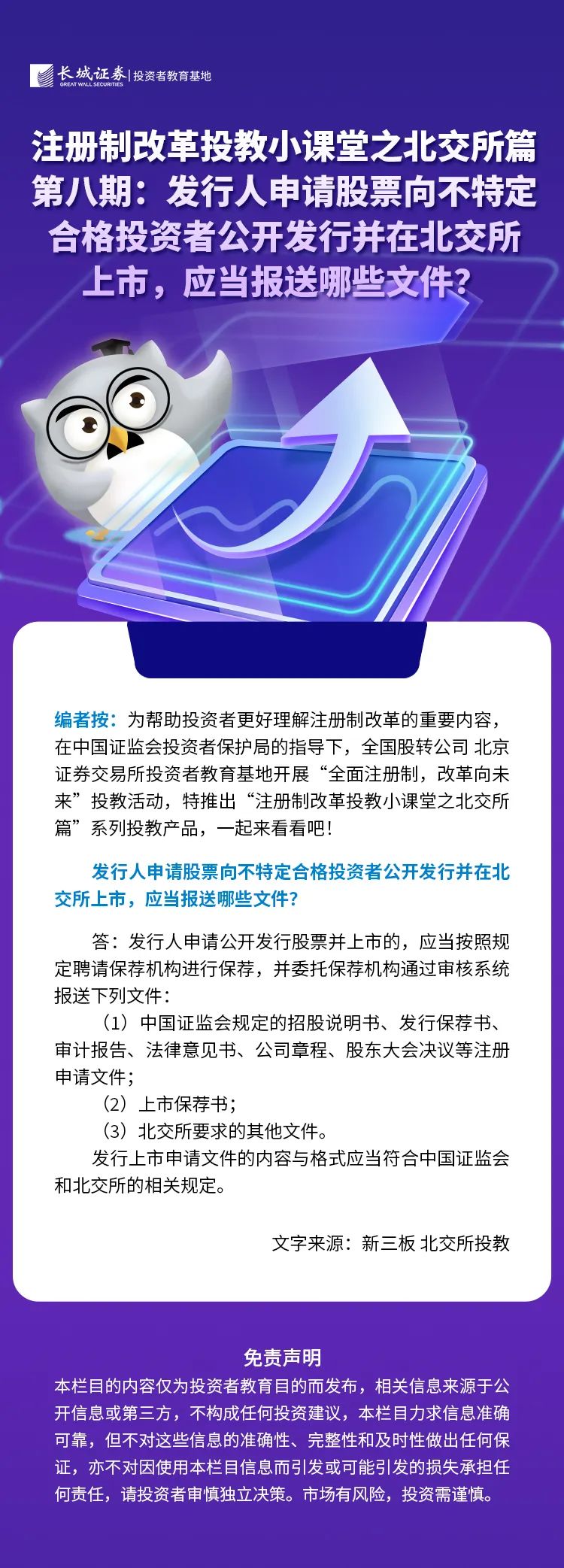 【长·原创】注册制改革投教小课堂之北交所篇丨第八期:发行人申请股票向不特定合格投资者公开发行并在北交所上市,应当报送哪些文件?