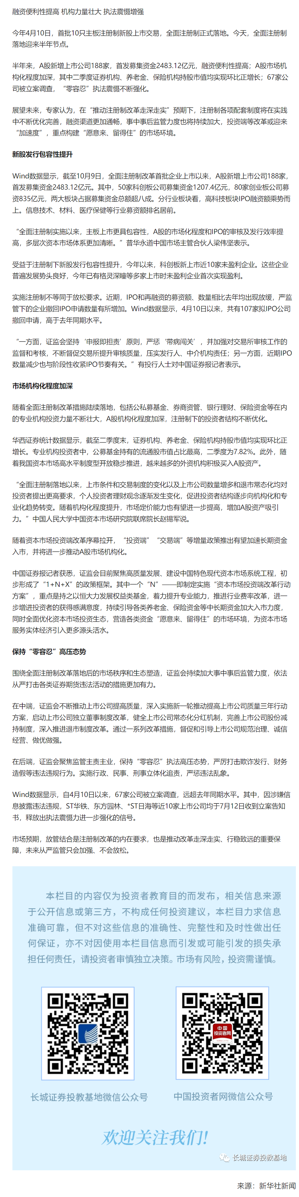 【金融消费者权益保护教育宣传月】全面注册制落地半年 A股生态不断优化