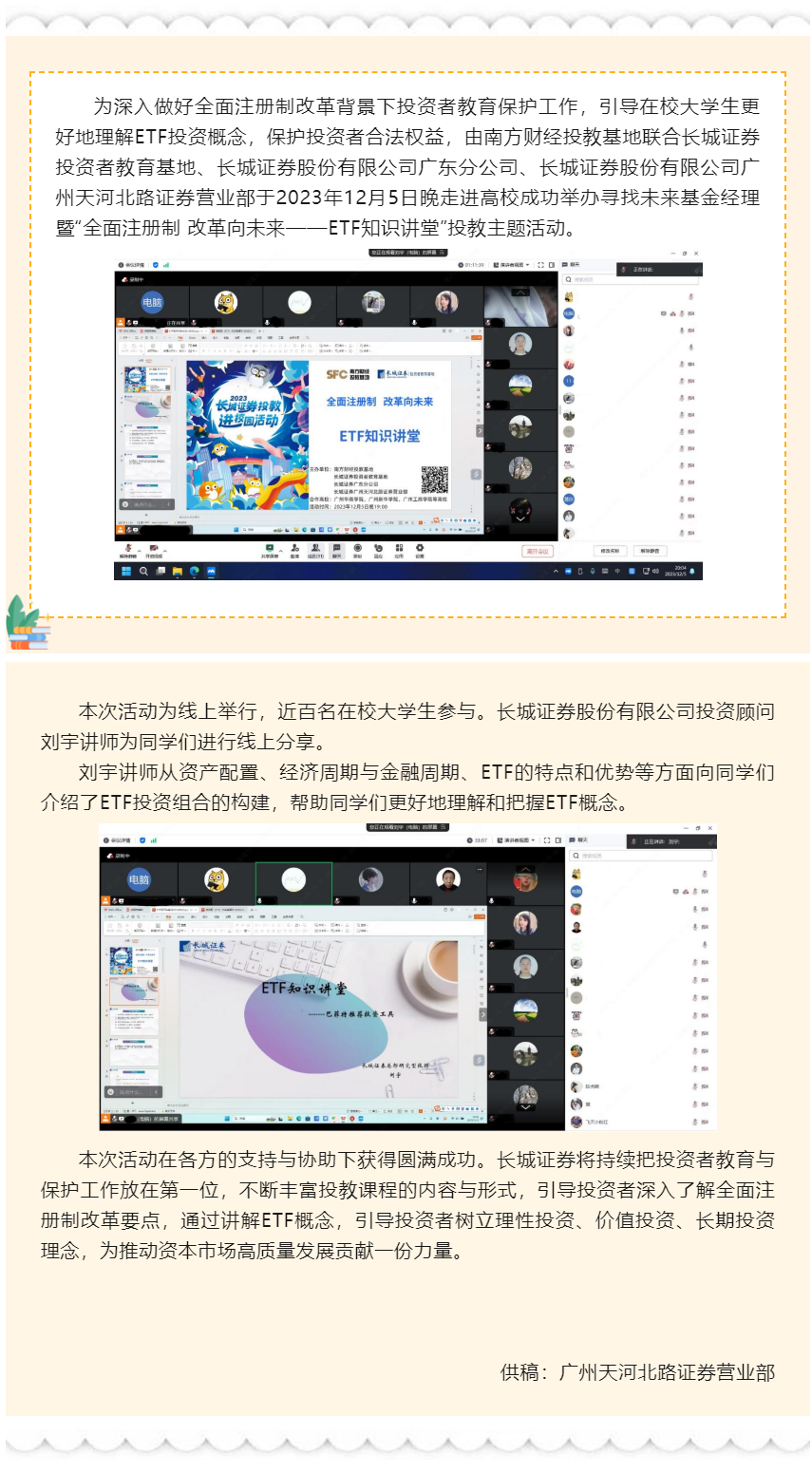 【城·活动】长城证券广州天河北路营业部走进高校举办“全面注册制 改革向未来——暨ETF知识讲堂”投教