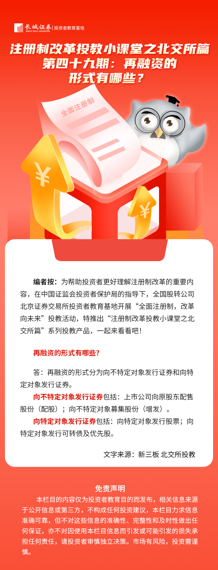 【长·原创】注册制改革投教小课堂之北交所篇丨第四十九期:再融资的形式有哪些?